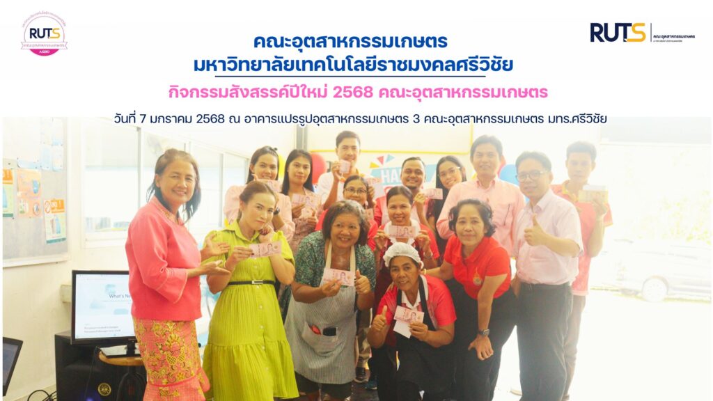 วันที่ 7 มกราคม 2568 คณะอุตสาหกรรมเกษตร จัดกิจกรรมสังสรรค์ปีใหม่ภายในหน่วยงาน นำทีมโดย คณบดีคณะอุตสาหกรรมเกษตร ผศ.ว่าที่ ร.ต.ปรีชา มุณีศรี ร่วมกับคณะผู้บริหาร อาจารย์ เจ้าหน้าที่ โดยการจัดกิจกรรมเป็นการจัดเลี้ยงอาหารมื้อเที่ยง และมีกิจกรรมมอบของขวัญปีใหม่ให้กับบุคลากรสายสนับสนุนเพื่อเป็นขวัญและกำลังใจในการทำงาน