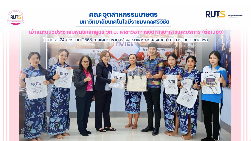 ในช่วงเช้าของวันศุกร์ที่ 24 มกราคม 2568 ผู้ช่วยศาสตราจารย์อภิญญา วณิชพันธุ์ พร้อมด้วย ผู้ช่วยศาสตราจารย์ดวงเดือน สงฤทธิ์ และ ผู้ช่วยศาสตราจารย์จิระนาถ รุ่งช่วง เดินทางเข้าแนะแนวประชาสัมพันธ์หลักสูตร วท.บ. สาขาวิชาการจัดการอาหารและบริการ (ต่อเนื่อง) ณ แผนกวิชาการโรงแรมและการท่องเที่ยว ณ วิทยาลัยเทคนิคสิชล โดยได้รับการต้อนรับจากคุณครูสุภาวลักษณ์ พุทธิสุทโธ และคุณครูสมรัก ปานมาศ ในการประสานเข้าพบนักศึกษาระดับประกาศนียบัตรวิชาชีพชั้นสูง (ปวส.) เพื่อแนะนำให้นักศึกษาเข้าใจรายละเอียดของหลักสูตรปริญญาตรีแบบต่อเนื่อง ที่ปรับปรุงใหม่ ซึ่งไม่มีการเทียบโอนรายวิชาและประโยชน์ที่นักศึกษาจะได้รับหากเข้าศึกษาต่อในหลักสุตรดังกล่าว ณ อาคารแผนกการโรงแรมและการท่องเที่ยว วิทยาลัยเทคนิคสิชล อ.สิชล จ.นครศรีธรรมราช
