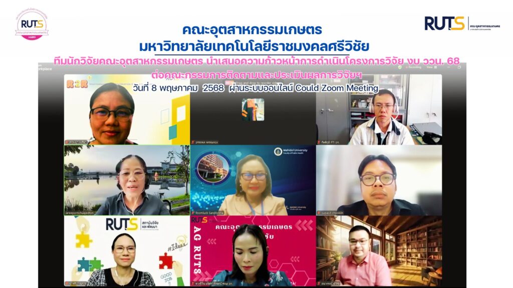 วันพฤหัสบดีที่ 8 พฤษภาคม 2568 คณะอุตสาหกรรมเกษตร มทร.ศรีวิชัย นำโดย รองคณบดีฝ่ายวิชาการและวิจัย ผู้ช่วยศาสตราจารย์จรีพร เชื้อเจ็ดตน ดำเนินการจัดประชุมติดตามความก้าวหน้าโครงการวิจัย งบประมาณกองทุนส่งเสริมวิทยาศาสตร์ วิจัย และนวัตกรรม (ววน.) ประจำปีงบประมาณ พ.ศ. 2568 โดยนักวิจัยได้นำเสนอรายงานความก้าวหน้าการดำเนินโครงการวิจัยต่อคณะกรรมการติดตามและประเมินผลการวิจัยฯ โดยในปีนี้มีโครงการวิจัยที่เข้าสู่กระบวนการรายงานความก้าวหน้า จำนวน 2 เรื่อง ได้แก่ โครงการวิจัยเรื่อง การพัฒนาถ่านกรดอะมิโนมูลค่าสูงด้วยเทคนิคอัลตราโซนิค และเอนแคปซูเลชันจากของเหลือทิ้งในอุตสาหกรรมอาหารทะเลภาคใต้ โดยมี รองศาสตราจารย์กิตติภูมิ ศุภลักษณ์ปัญญา เป็นหัวหน้าโครงการวิจัย และ โครงการวิจัยเรื่อง การพัฒนาผลิตภัณฑ์โจ๊กกึ่งสำเร็จรูปจากเอกซ์ทรูเดตแป้งข้าวกล้องภาคใต้เสริมพรีไบโอติกสำหรับผู้สูงวัย หัวหน้าโครงการวิจัย ผู้ช่วยศาสตราจารย์สุภาษิต ชูกลิ่น การประชุมในครั้งนี้ ได้รับเกียรติจากคณะกรรมการภายนอก 3 ท่าน ได้แก่ รองศาสตราจารย์พร้อมลักษณ์ สรรพ่อค้า จากมหาวิทยาลัยมหิดล ผู้ช่วยศาสตราจารย์ธนากรณ์ ดำสุด อาจารย์จากคณะวิทยาศาสตร์และเทคโนโลยี และ ผู้ช่วยศาสตราจารย์ชาคริยา ฉลาด ผู้แทนจากสถาบันวิจัยและพัฒนา มทร.ศรีวิชัย ที่ได้รับฟังการนำเสนอรายงานพร้อมทั้งให้ข้อเสนอแนะเพื่อให้งานวิจัยมีความสมบูรณ์ เป็นไปตามวัตถุประสงค์