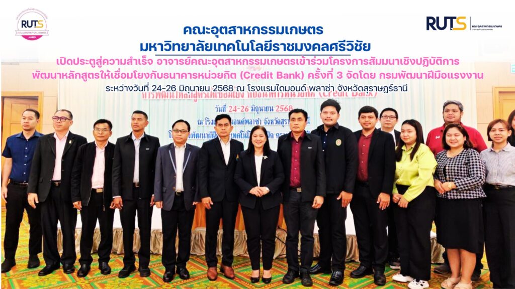 เมื่อวันที่ 24-26 มิถุนายน 2568 ที่ผ่านมา บุคลากรคณะอุตสาหกรรมเกษตร มทร.ศรีวิชัย ราย ผศ.จิระนาถ รุ่งช่วง อาจารย์ประจำหลักสูตรการจัดการอาหารและบริการ เข้าร่วมโครงการสัมมนาเชิงปฏิบัติการพัฒนาหลักสูตรให้เชื่อมโยงกับธนาคารหน่วยกิต (Credit Bank) ครั้งที่ 3 โดยร่วมออกแบบหลักสูตรเพื่อใช้ในการเก็บหน่วยกิต โครงการดังกล่าวดำเนินการโดย กองพัฒนาผู้ฝึกและเทคโนโลยีการฝึก สถานบันพัฒนาฝีมือแรงงาน 22 นครศรีธรรมราช กรมพัฒนาฝีมือแรงงาน โครงการดังกล่าวจัดขึ้นมีวัตถุประสงค์เพื่อพัฒนาหลักสูตรให้เชื่อมโยงกับระบบธนาคารหน่วยกิต (Credit Bank) โดยยึดโยงกับมาตรฐานอาชีพและหลักสูตรการจัดการเรียนการสอน โดยคณะอุตสาหกรรมเกษตร มทร.ศรีวิชัย ได้ผ่านการรับรองการจัดตั้งศูนย์ทดสอบมาตรฐานฝีมือแรงงาน สาขาพนักงานแผนกบริการอาหารและเครื่องดื่มในธุรกิจโรงแรมและภัตตาคาร (ระดับ 1) กิจกรรมจัดขึ้น ณ โรงแรมไดมอนด์ พลาซ่า จังหวัดสุราษฎร์ธานี บุคลากรที่เข้าร่วมโครงการจะได้นำความรู้ที่ได้รับไปใช้ในการพัฒนางานและพัฒนาหลักสูตรการเรียนการสอนต่อไป.